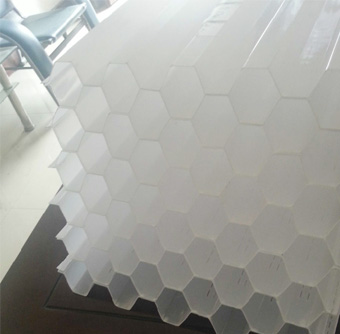 我厂生产的斜管也叫六角蜂窝,填料组装形式有斜管、直管两种,材质有聚丙烯、乙丙共聚、聚氯乙烯三种,特别是乙丙共聚近年来,得到广大用户的一致好评,主要优点有:韧性强、组装强度好、不变形、不脆裂、使用寿命长、抗老化期在原聚丙烯填料3-5年的基础上可延长到5-8年的使用寿命,通过近年来的发展趋势,各地水厂选用的斜管都在向乙丙共聚型填料发展。